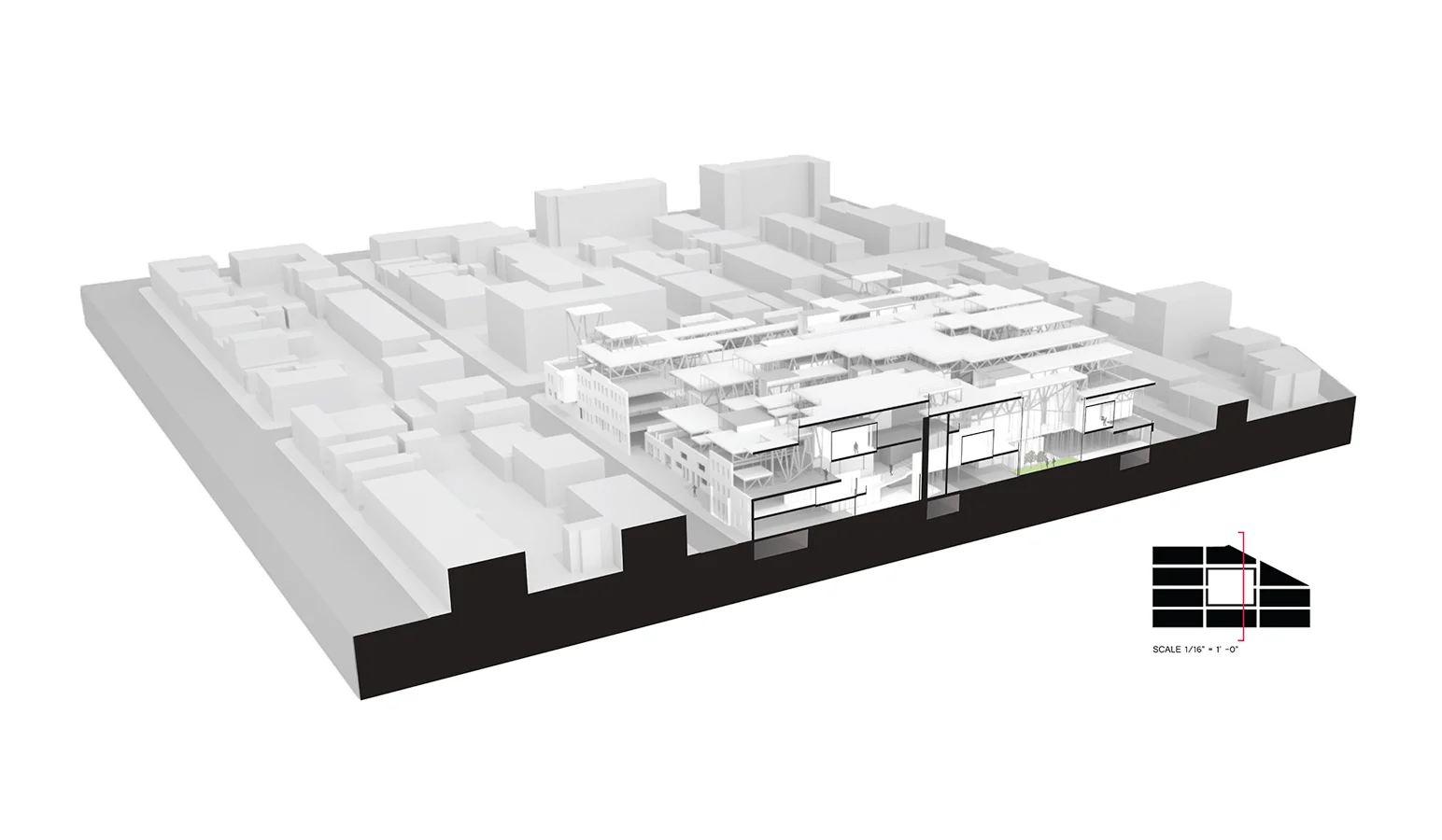 The art collective is located in Bushwick, designed to physically represent the virtual collective already in existence. It is also a response to the New Whitney Museum being built in the Chelsea Gallery District.